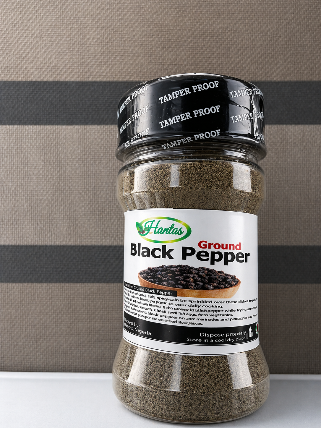 Hantos Ground Black Pepper is a premium spice made from 100% organic black peppercorns, carefully ground to bring out the perfect blend of flavor and aroma. ?