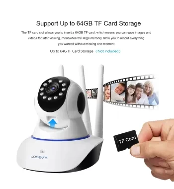 - Local Storage: Includes a MicroSD/TF card slot with support for cards up to 128GB, providing ample storage for recorded videos.
