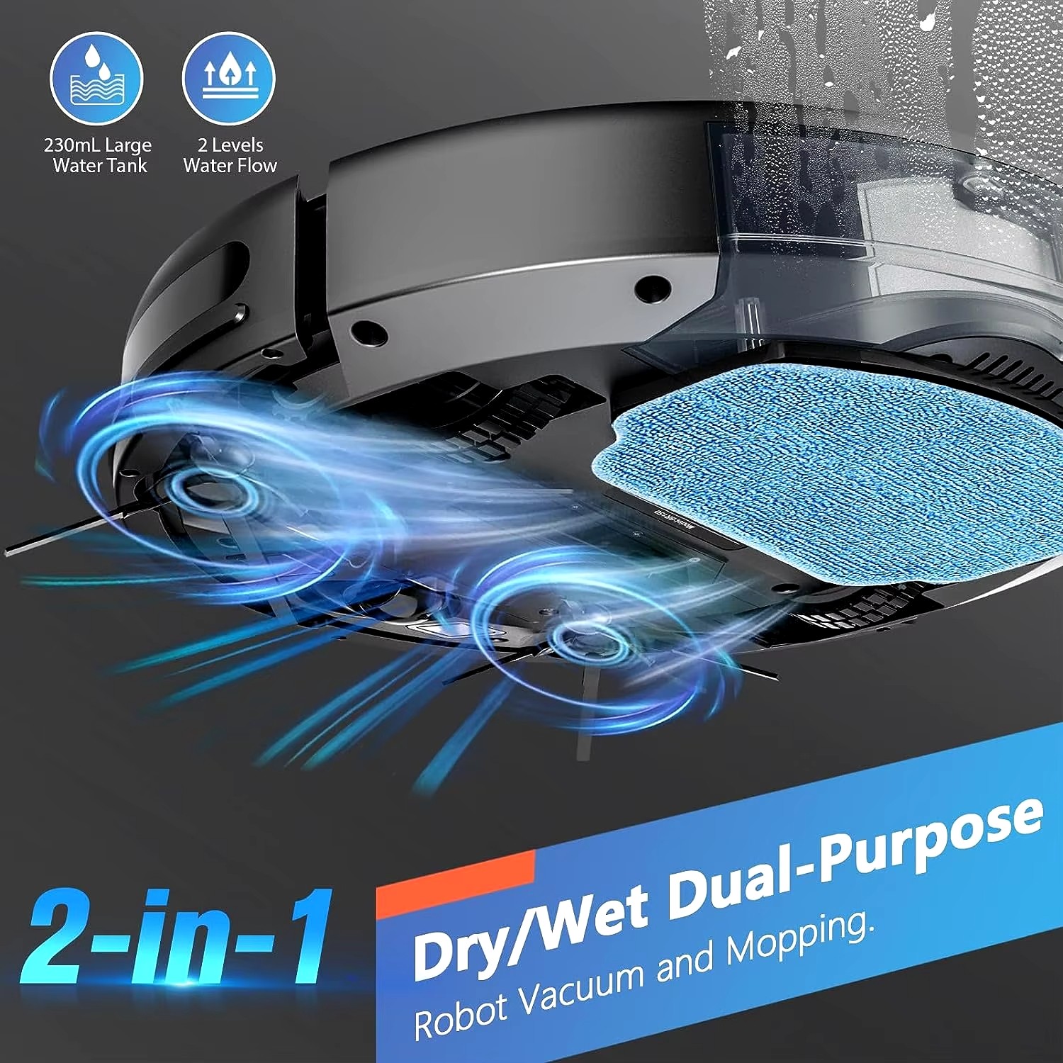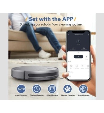 Feature | * Brushless motor with 1400pa strong suction * 3 in 1 Cleaning ,vacuum+sweep+mop * Auto-charging, remote cotrol * With Tuya APP control,compatible with Amazon Alexa and Google home *With water tank,wet+dry clean *Anti-collision,Anti-drop *Random route with Auto/ edge/ spot/ Zig-zag cleaning mode | ||