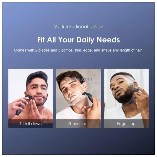 1. Multi-Functional Grooming: Includes 2 blades and 3 combs for trimming, edging, and shaving.