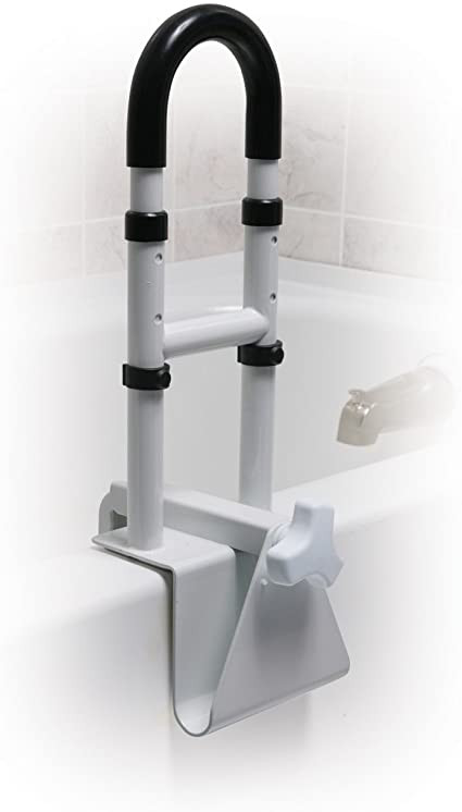 This adjustable high bathtub safety rail by drive medical was designed to fit just about any style of bathtub. the attractive white powder coated steel frame is durable and aesthetically pleasing. the grip bar adjusts from 14′′ to 17′′ allows you to find the perfect height for your needs. the angle of the grab bar is parallel to the shower wall. the adjustable width clamp attaches by turning the locking mechanism which tightens the rubber pads on all bath tub contact points. the rubber pads prevents scratching of the tubs surface and ensure a secure fit. it is easy to install without needing