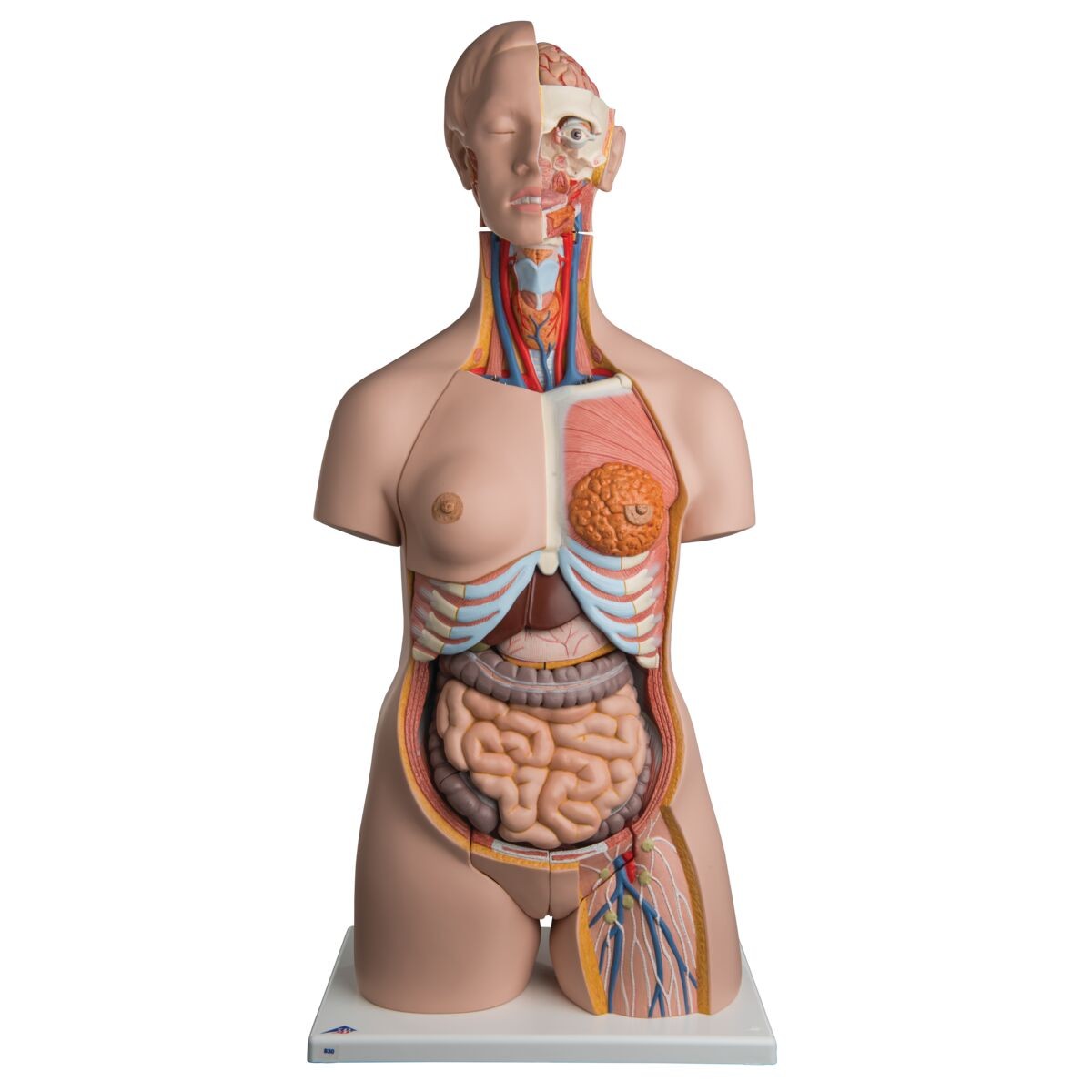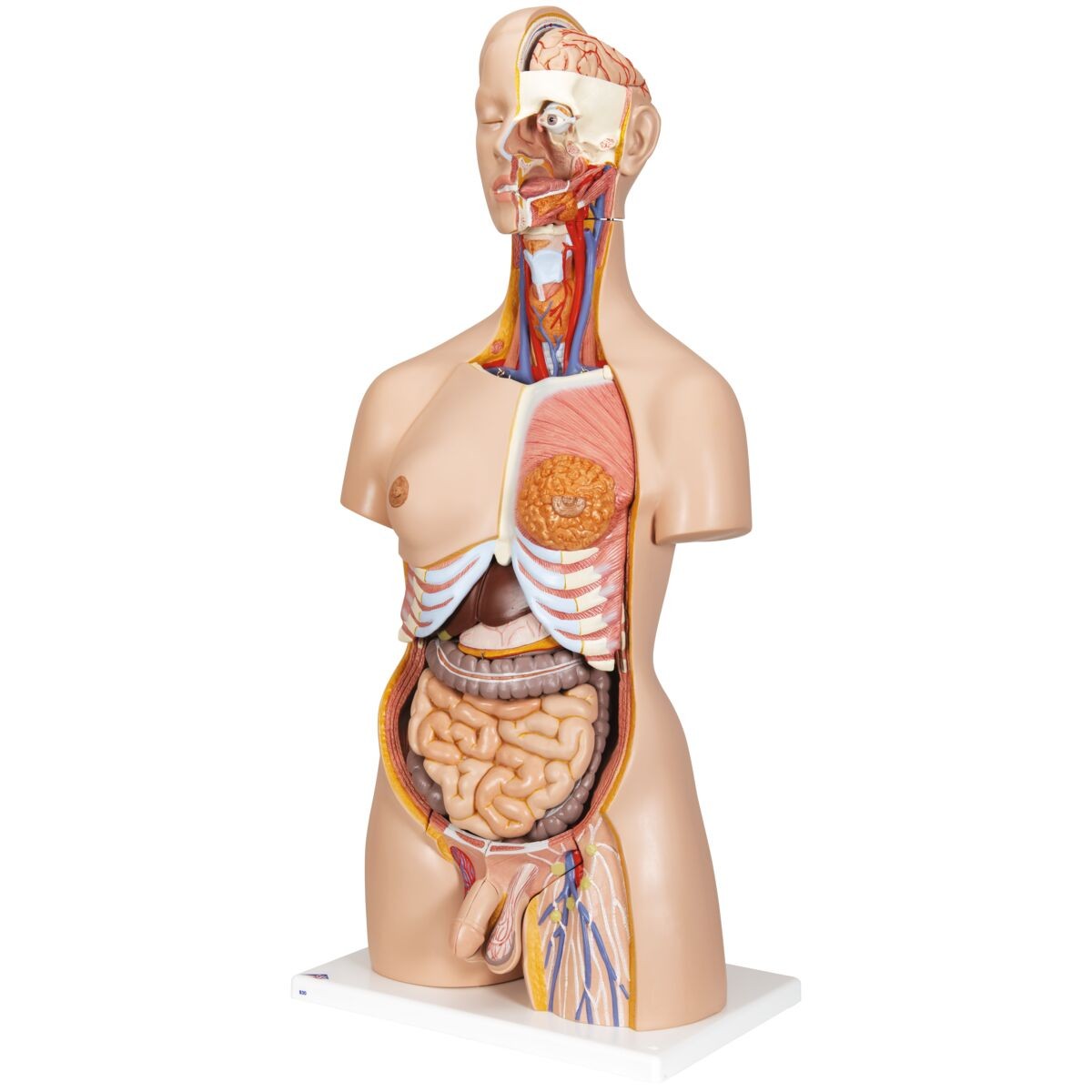 Deluxe Dual Sex Torso, 24-part offers all possibilities you need for detailed demonstrations in human anatomy and other study subjects.